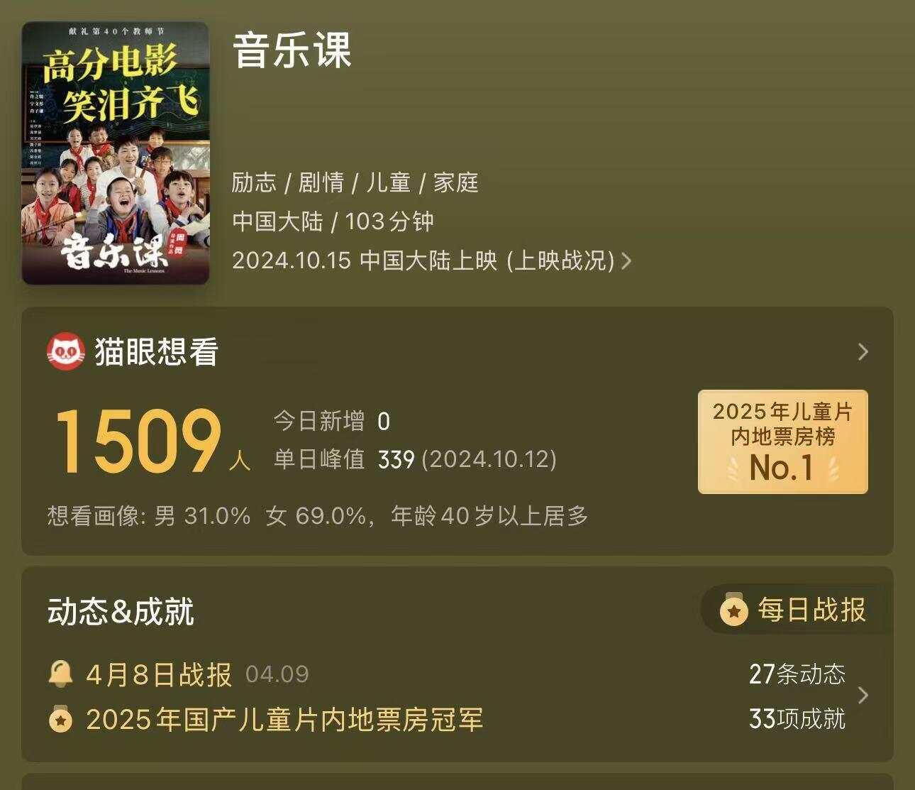 影片阐发“天下最好意思西席”——江西泰和县水槎乡中心小学音乐竭诚肖惠文实在行状改编,是华表奖导演周勇继《我的体育竭诚》后的又一力作,由许之糯、宁文彤、肖子谦、肖淦尹领衔主演。自2024年10月15日天下公映以来,密钥历经13次延期至12月16日,长线放映技术不仅院线上座率稳中有升,更拓荒校园巡映特色旅途——在拍摄地江西走进大中小学校累计放映近3000场,收场社会效益与经济效益双丰充。