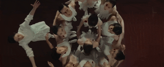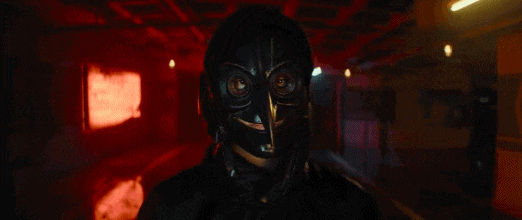 五颜六色的霓虹,戴着玄色乌鸦面具、神出鬼没的黑衣东谈主,王人从心情上塑造出了一股极致压抑的氛围,致使还有种cult片的惊悚感。