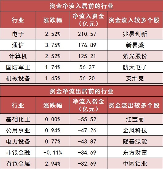 3.电子等行业结束主力资金净流入