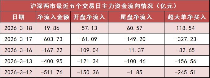 1. 两市主力资金净流入近20亿元